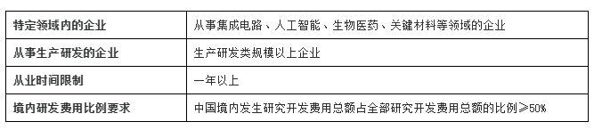 對(duì)在京從事集成電路、人工智能、生物醫(yī)藥、關(guān)鍵材料等領(lǐng)域生產(chǎn)研發(fā)類規(guī)模以上企業(yè)認(rèn)定高新技術(shù)企業(yè)時(shí),滿足從業(yè)一年以上且在中國境內(nèi)發(fā)生的研究開發(fā)費(fèi)用總額占全部研究開發(fā)費(fèi)用總額的比例不低于50%條件的,實(shí)行“報(bào)備即批準(zhǔn)”。