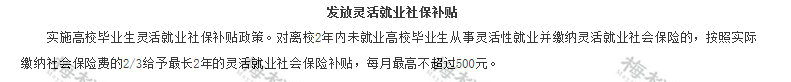 為了鼓勵(lì)就業(yè)困難人員,一些省份對(duì)符合條件的人員給予靈活就業(yè)補(bǔ)貼。 例如福建省規(guī)定:就業(yè)困難人員和離校2年內(nèi)未就業(yè)的高校畢業(yè)生實(shí)現(xiàn)靈活就業(yè),并交納社會(huì)保險(xiǎn)費(fèi)的,可向當(dāng)?shù)毓簿蜆I(yè)服務(wù)機(jī)構(gòu)申領(lǐng)社保補(bǔ)貼。 靈活就業(yè)社保補(bǔ)貼標(biāo)準(zhǔn)原則上不超過(guò)個(gè)人實(shí)際繳納社會(huì)保險(xiǎn)費(fèi)的2/3。 除此之外,湖南省和青島市也出臺(tái)了相應(yīng)的政策。