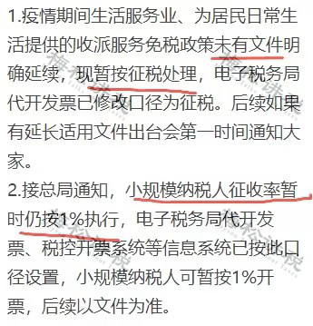 也就是說,生活服務(wù)業(yè)、為居民日常生活提供的收派服務(wù)等從1月開始是按征稅方式開具的發(fā)票。
