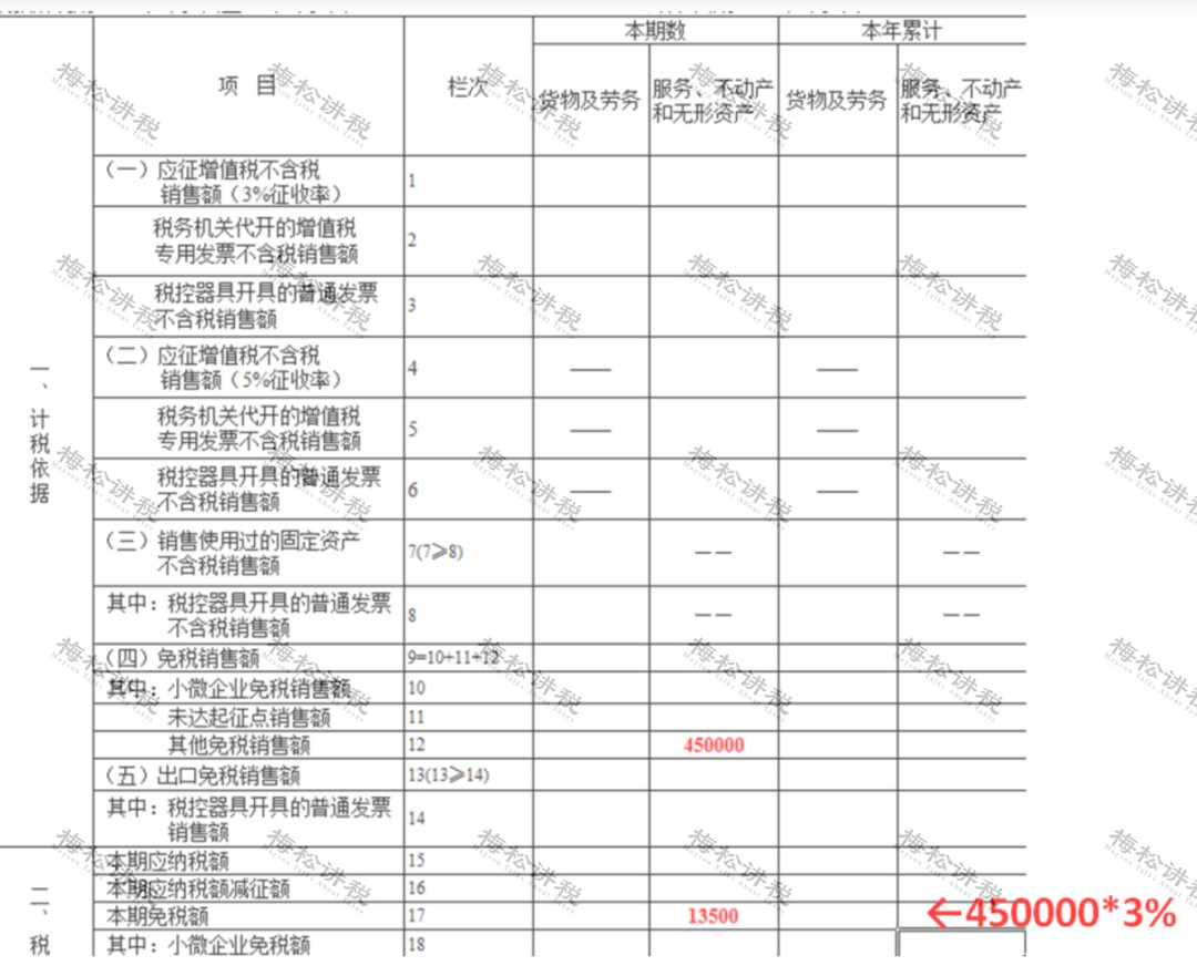A公司為生活服務(wù)業(yè)增值稅小規(guī)模納稅人,銷售額45萬元(不含稅),適用免征增值稅政策。
