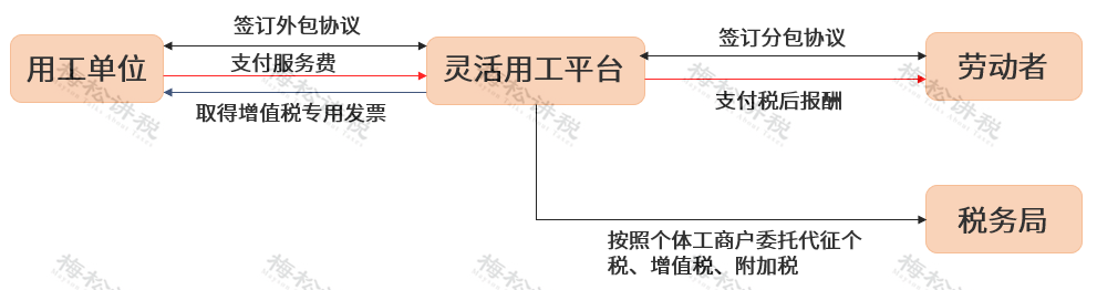 靈活用工平臺(tái)運(yùn)作的核心業(yè)務(wù)是與稅務(wù)局簽訂委托代征的協(xié)議并申請(qǐng)個(gè)體工商戶的核定征收。