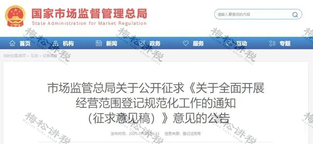 近日,市場監(jiān)管總局發(fā)布征求意見公告,要求各省、自治區(qū)、直轄市及新疆生產(chǎn)建設(shè)兵團(tuán)市場監(jiān)管局開展經(jīng)營范圍登記規(guī)范化工作。為企業(yè)提供更加規(guī)范、便利的登記注冊服務(wù)。自2021年4月1日起,在全國范圍內(nèi)全面開展經(jīng)營范圍登記規(guī)范化工作,有條件的地方甚至可以提前開展相關(guān)工作。
